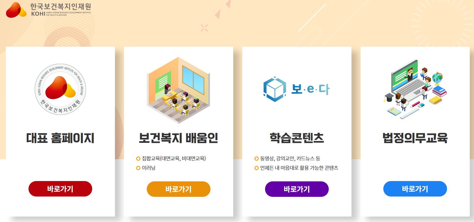 한국보건복지인재원에서는 특정 분야의 종사자들에게 의무적으로 수료해야 하는 교육 과정을 운영하고 있습니다.