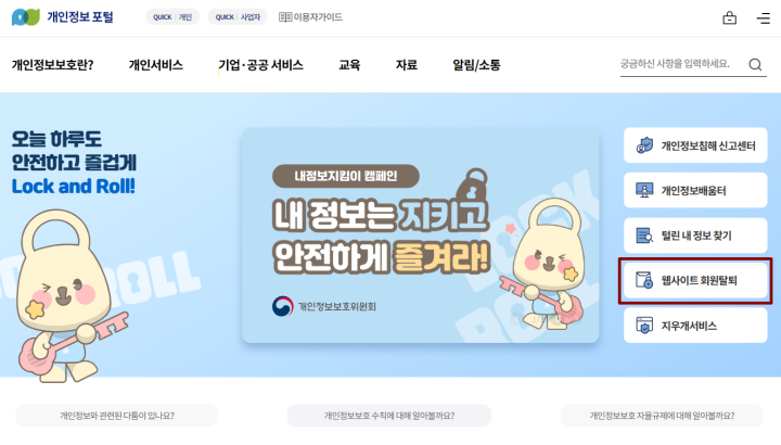 개인정보 포털에서는 단순히 조회 및 탈퇴 기능만 제공하는 것이 아닙니다.